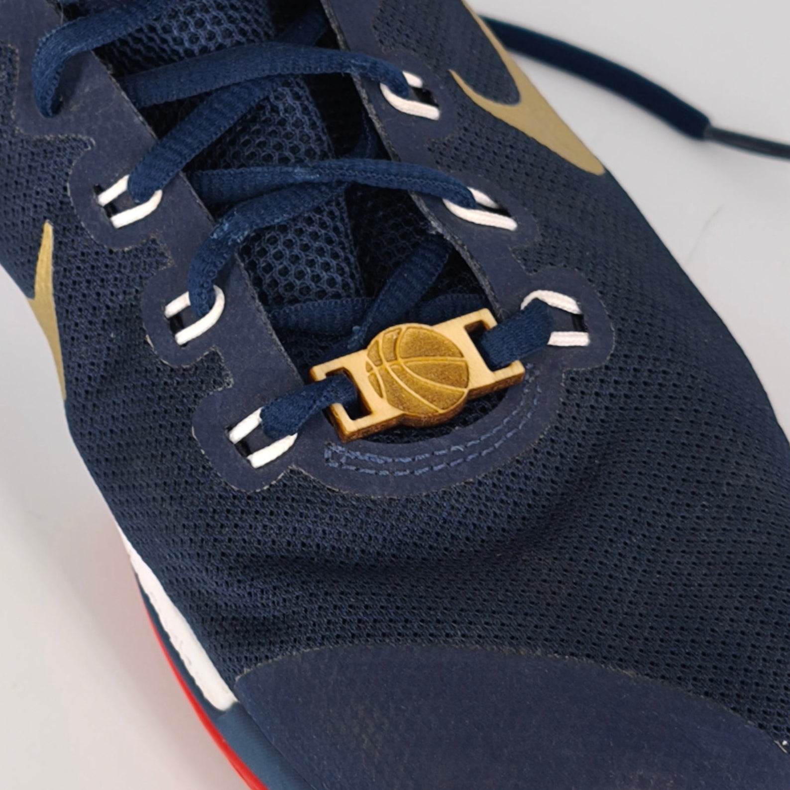 Accessoire de décoration de chaussures sur le thème du Basketball, en acrylique noir ou en bois, avec un motif de ballon ou personnalisable. Vendu par lot de 2, identiques ou un design différent chacun comme sur la photo.